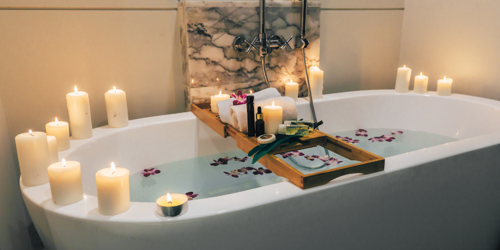 Pri kúpaní pridajte 2–3 lyžice do teplej vody, zapáľte sviečku, relaxujte a vedome dýchajte. Rozmarín oživí krvný obeh, levanduľa uvoľní myseľ a soľ pomôže telu vytiahnuť negatívnu energiu a priaznivo pôsobí na pokožku.